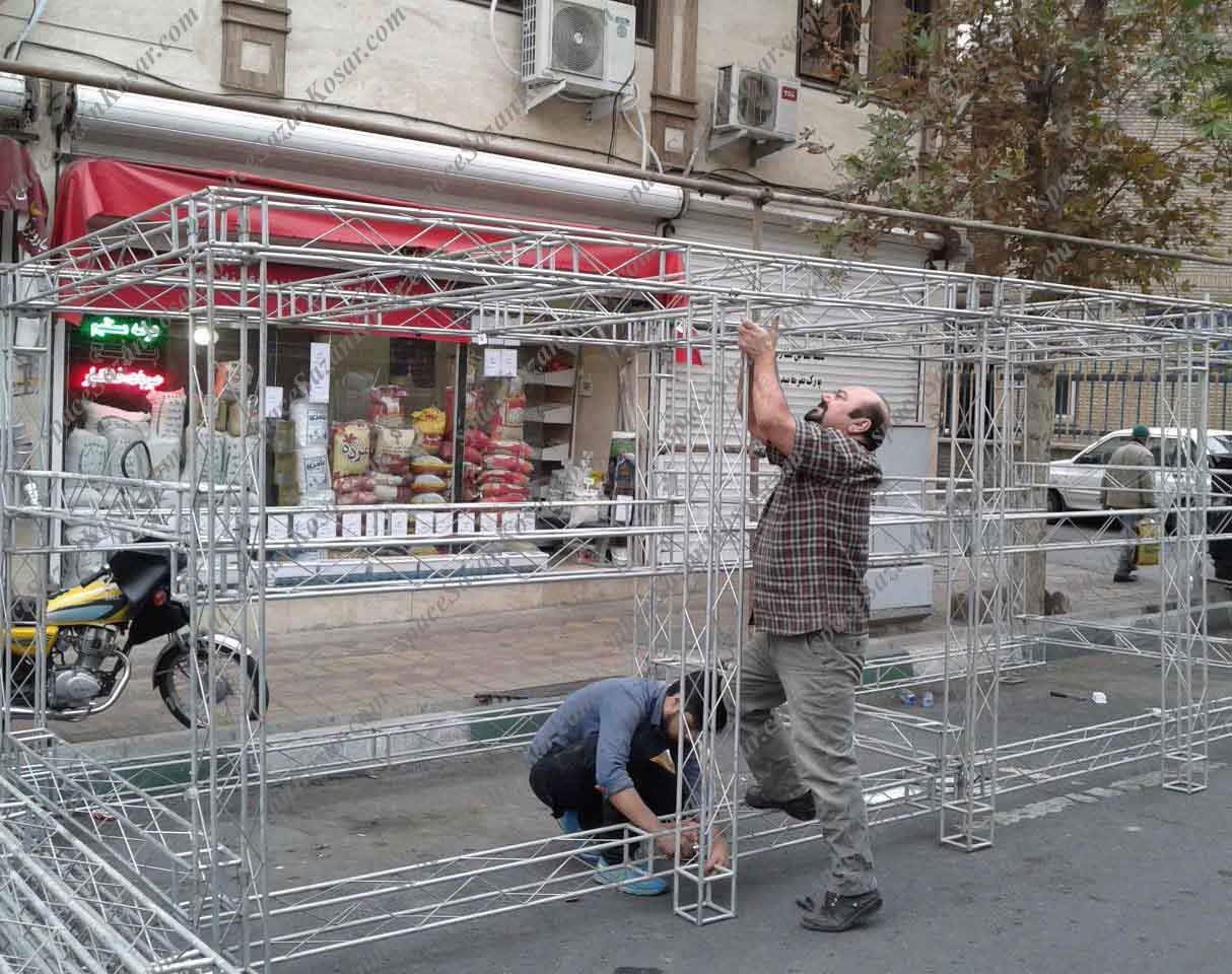 این داربست ها سازه های تختی هستند که شما می توانید با توجه به نحوه ی اجرای آن و طراحی غرفه، این سازه ها را به یک دیگر متصل کرده و آن را به شکل مورد نظرتان در بیاورید. برای نصب این سازه های به یک دیگر نیز می توانید از پیچ و مهره های مخصوصی استفاده کنید.