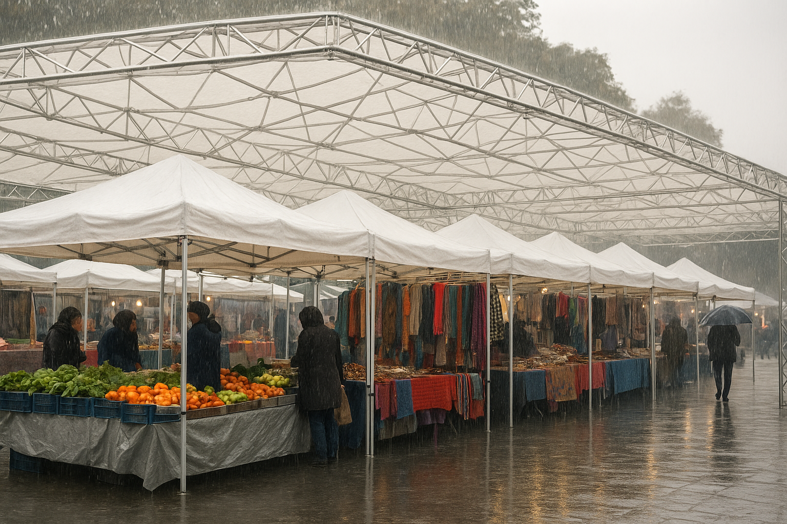 شرایط آب وهوایی بابل با بارندگی های مکرر و رطوبت بالا باعث می شود که استفاده از غرفه های ضد آب نمایشگاهی یک ضرورت باشد. اسپیس فریم با قابلیت نصب پوشش های ضد آب مانند برزنت و چادرهای مخصوص، امکان ایجاد غرفه هایی مقاوم در برابر باران را فراهم می کند. این ویژگی به برگزارکنندگان کمک می کند تا بدون نگرانی از تغییرات جوی، نمایشگاه ها و رویدادهای خود را برگزار کنند.