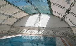 اسپیس فریم ، سازه ای مستحکم و دارای شکل پذیری مناسب جهت ساخت انواع سازه های نمایشگاهی و غیر نمایشگاهی محسوب میشود. این سازه را میتوان با انواع مختلف پوشش ها پوشاند. از پوشش های مرسوم اسپیس ، چادرهای ترانزیتی یا چادرهای کانتینری یا ایرانیت های سیمانی ، فلزی و پلاستیکی یا سقف های کاذب دیگر نظیر ساندویچ پنل یا هرگونه پوشش فلزی چه سبک یا سنگین و… استفاده کرد.